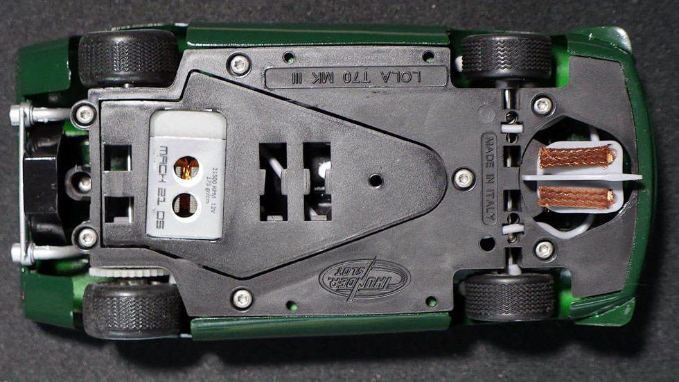 Previous Thunderslot T70 MkIIIs have featured the 'Chevrolet' name moulded on the engine. This has been removed from the Aston Martin version - both Giovanni and Gaugemaster's Terry Smith being sticklers for accuracy...