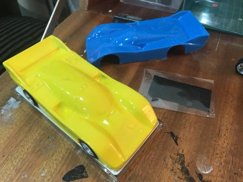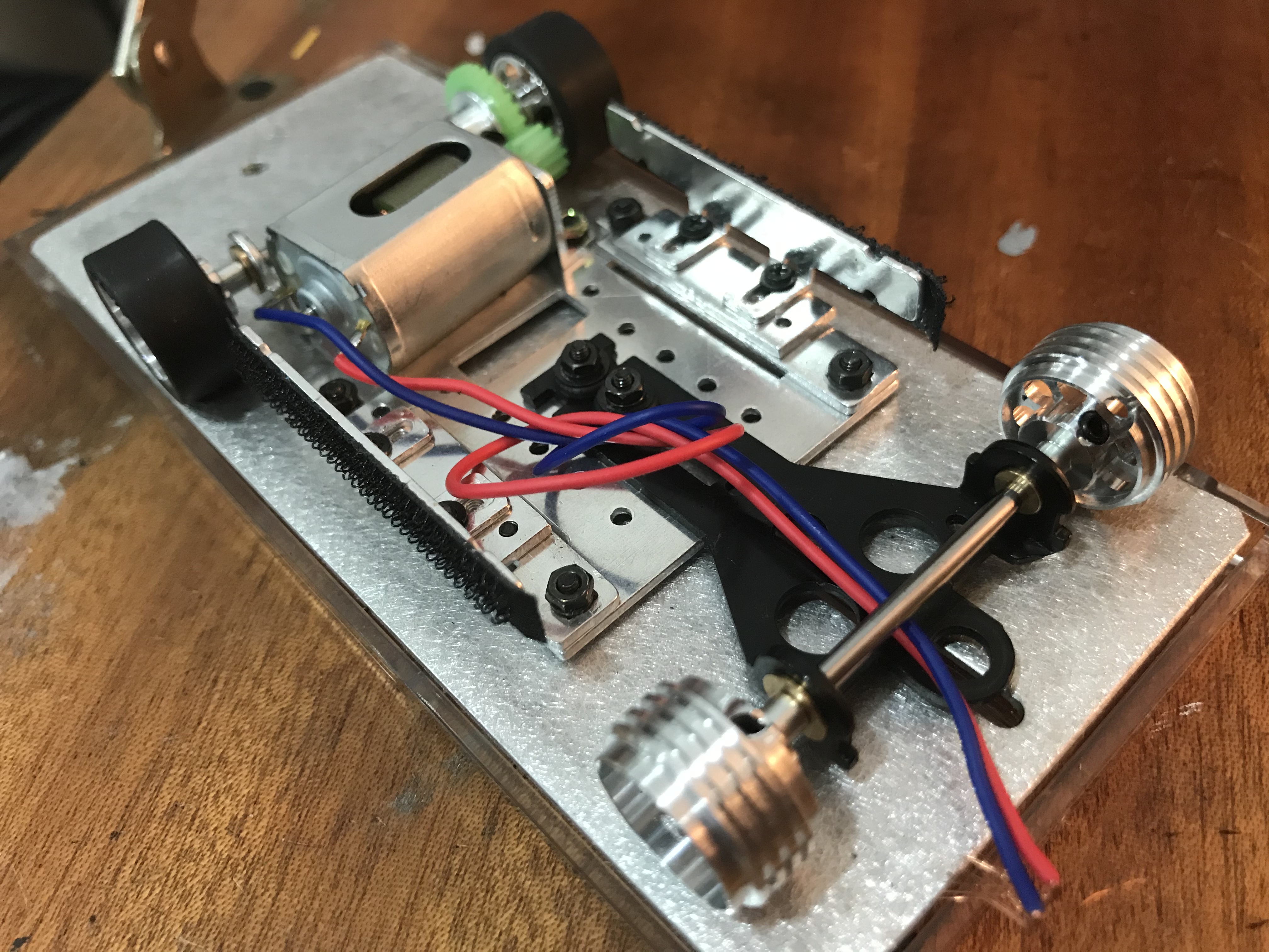The cars themselves race pretty good out of the box and make a nice durable little car for younger racers. Just a personal preference, they come mounted quite high for the body, and I just rather see them sitting a little lower. The white car below sitting at the out of the box height, blue car is after moving the mounting plates.