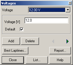 Clicking the “Best Laptimes”-button starts the dialog for analysing the best laptimes10KJFMO and filters the lap times using the current track voltage.