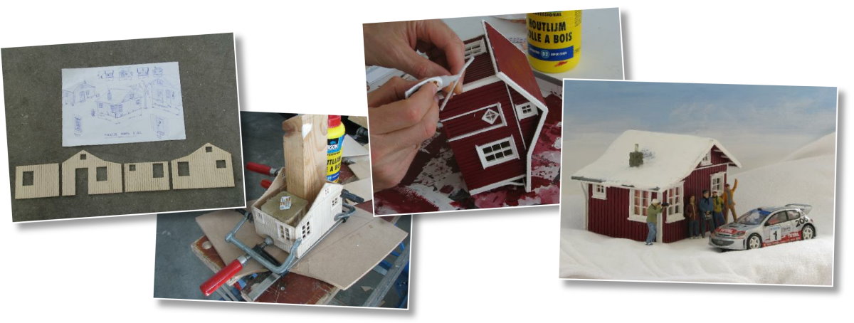 If you want to make your own buildings, Hub gave us a fabulous tutorial on his Swedish Rally Track thread. The whole thread is a remarkable account of the creation of an utterly wonderful slot car layout. You can find it on the SlotRacer forum here.