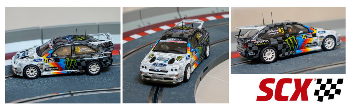 SCX have just released these photographs showing a pre-production sample of their new Ken Block Escort Cosworth. The official word is the cars will be available in Spain at the end of August. You can find out more – including two videos of the real car – in the SlotRacer News forum…