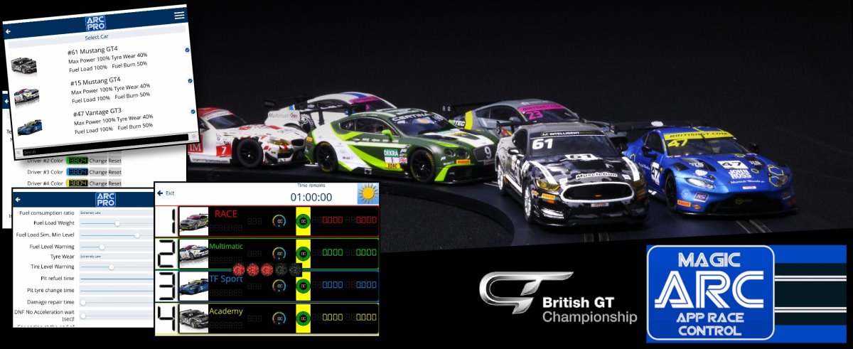 - British GT with the Magic ARC App Using Scalextric ARC Pro and the Magic ARC app, Andy has put together a detailed simulation of a British GT race that anyone can use on their digital home track – or for club racing. You can find it on the Jadlam blog.