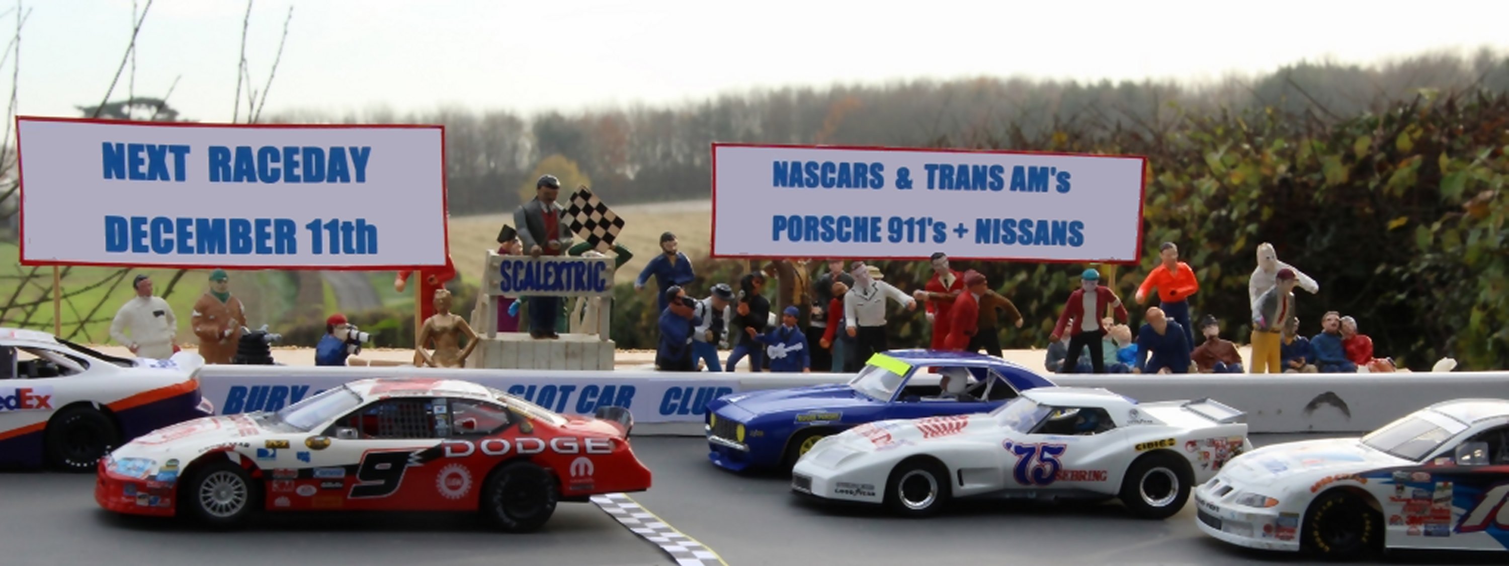 Time for a catch-up. December 11th passed in a bit of a blur as we rushed towards Christmas under the threat of another lockdown but that meeting did squeeze in - just. Three classes were run, with the owner/drivers class being NASCAR and Transams. No photos of the Club Scalextric Porsche 911's or Slot.it Nissans though.