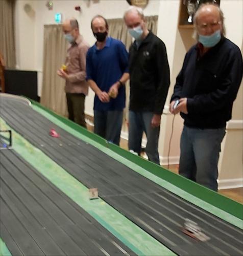 First up were the Club's Scalextric Karts, where Shaun was thrilled to take the win from Mark by half a lap.