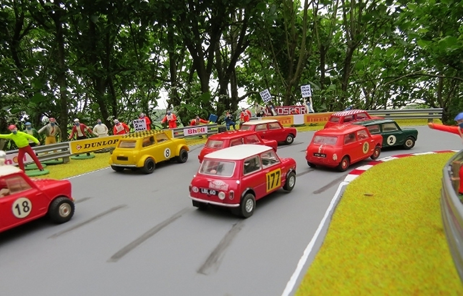 As the Mini 7even cars scream towards the corner .......