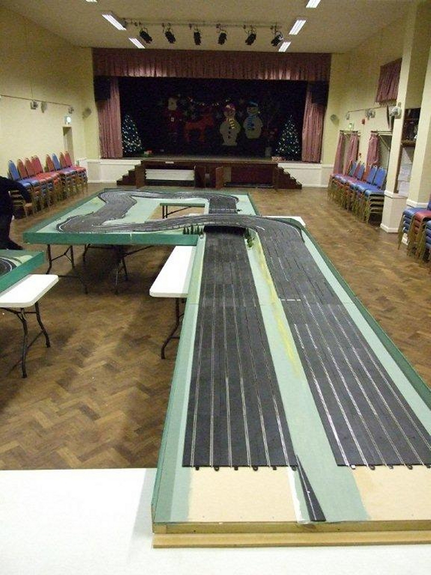 ... using hand drawn plans and a pile of track.                                                            The first trial assembly at the hall.
