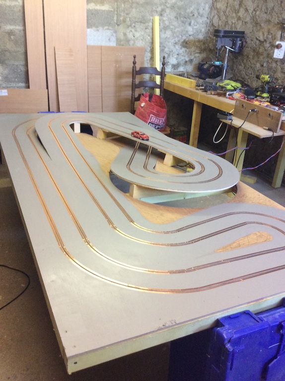 ), it only took a few minutes to wire it up and temporarily attach the control block!!Fun. OK as soon as you start you are finished but it's a track and the cars still need driving. It'll do for now.