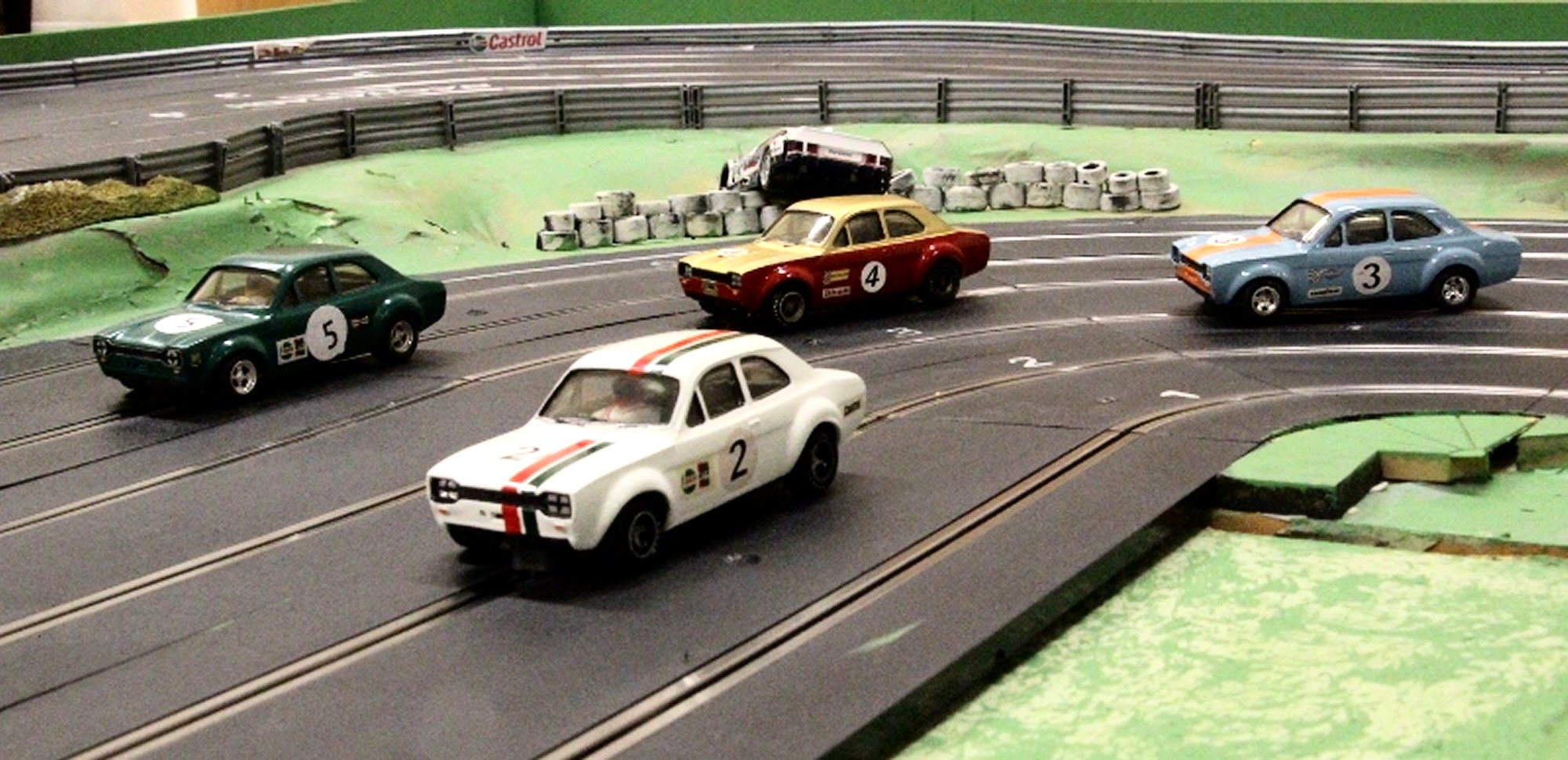 2nd support race, Scalextric Mk1 Escorts, slightly modified 1970’s cars running very well with door handles touching lap after lap, David coming home in 1st place.