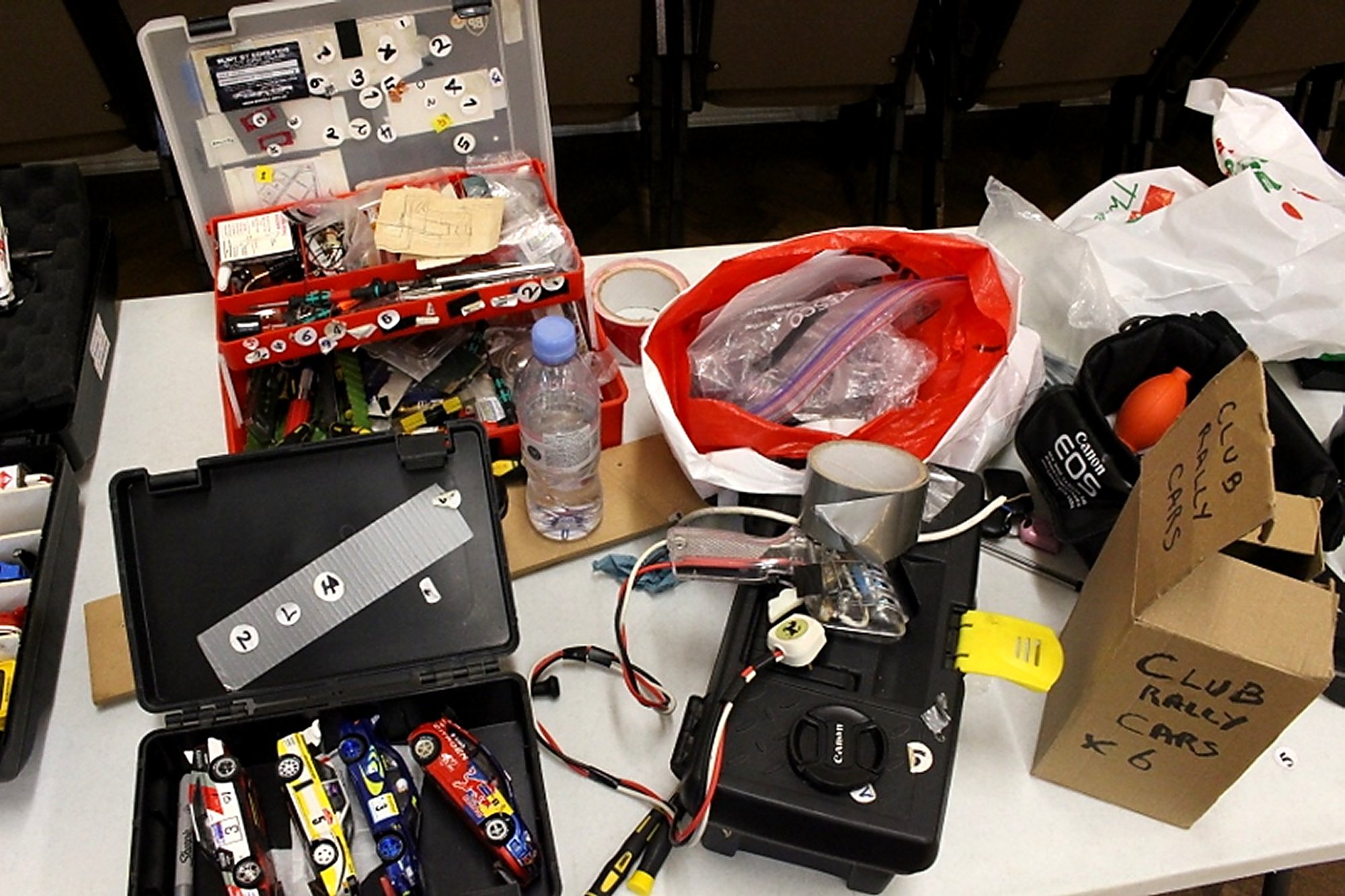 Ten racers turned up to assemble the track on race night but for some reason they were feeling a bit camera shy, so rather than focusing on the track action, drivers and marshals we've gone for their pit boxes instead.