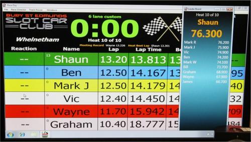 As usual these were great fun, with close combat on most corners, Shaun coming home in first place just a tenth of a lap ahead of a hard charging Mark R. Not to be outdone Mark J secured third spot just three tenths of a lap further back. Talking of 'Mark's', although ninth overall Wayne made HIS 'mark' with a class fastest lap of 13.226 seconds, showing he can really get some pace out of these things. With a bit of luck he could have been higher.