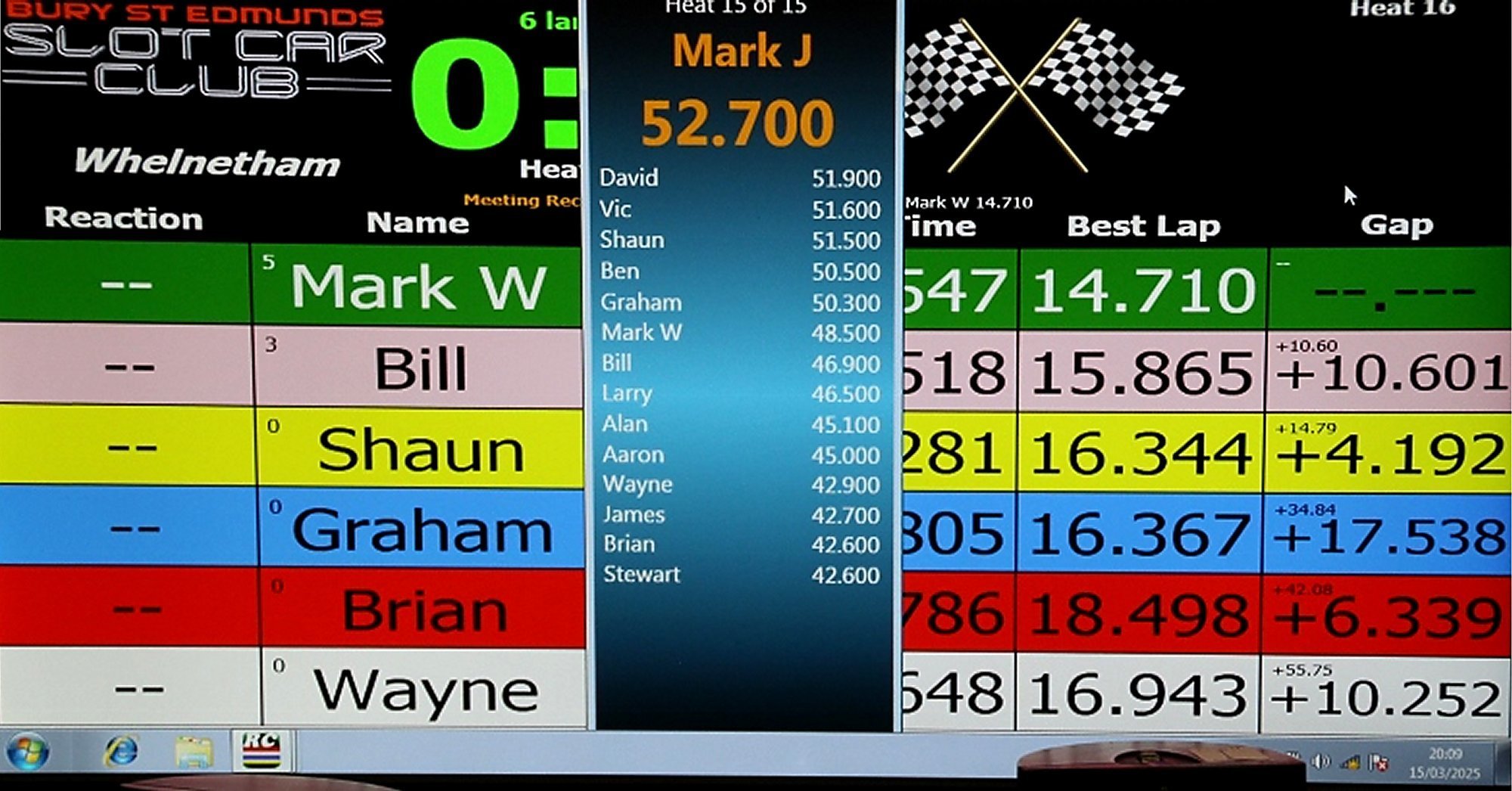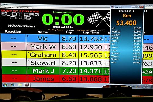 In the final heat it was neck and neck between three drivers to see who would come out on top overall. It looked close, could Vic' and Mark W topple Ben's final score of 53.4 laps?