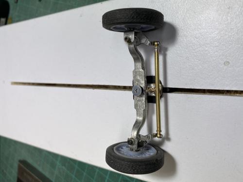 I want the axle and wheels to turn with the guide so I was going to try and make a i-beam axle but luckily found a large model truck one made from white metal.