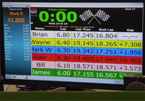 In the final heat it was neck and neck between three drivers to see who would come out on top overall. It looked close, could Vic' and Mark W topple Ben's final score of 53.4 laps?