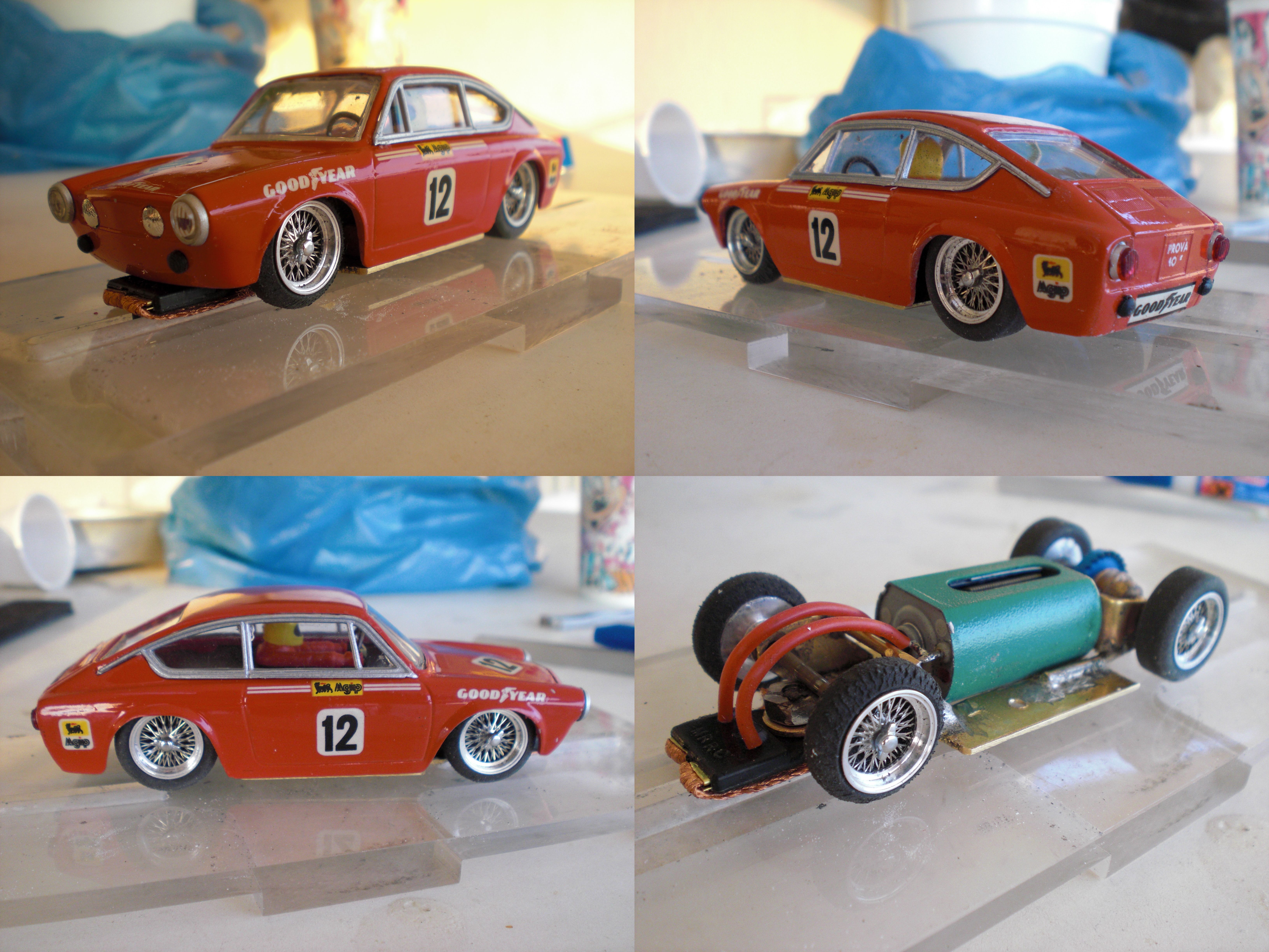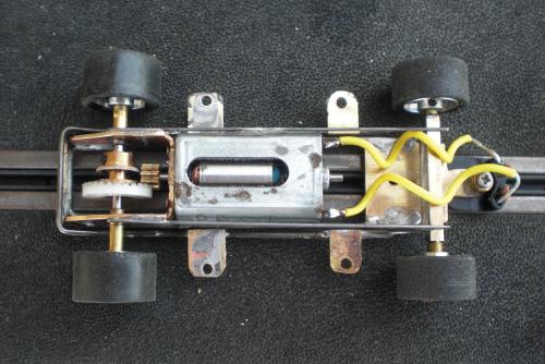 Hello Anthony, the Mini is a Scalextric,.........a repaint with a scratchbuilt  brass/wire chassis, built for a club member,......sorry, but I do not have any chassis pics.