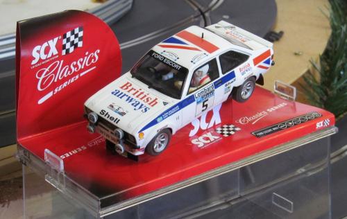 SCX 63690 Ford Escort mkII. Well used, but still plenty of life left. Magnet in place, Scalextric mkI Escort wheels with Paul Gage 40a tyres.