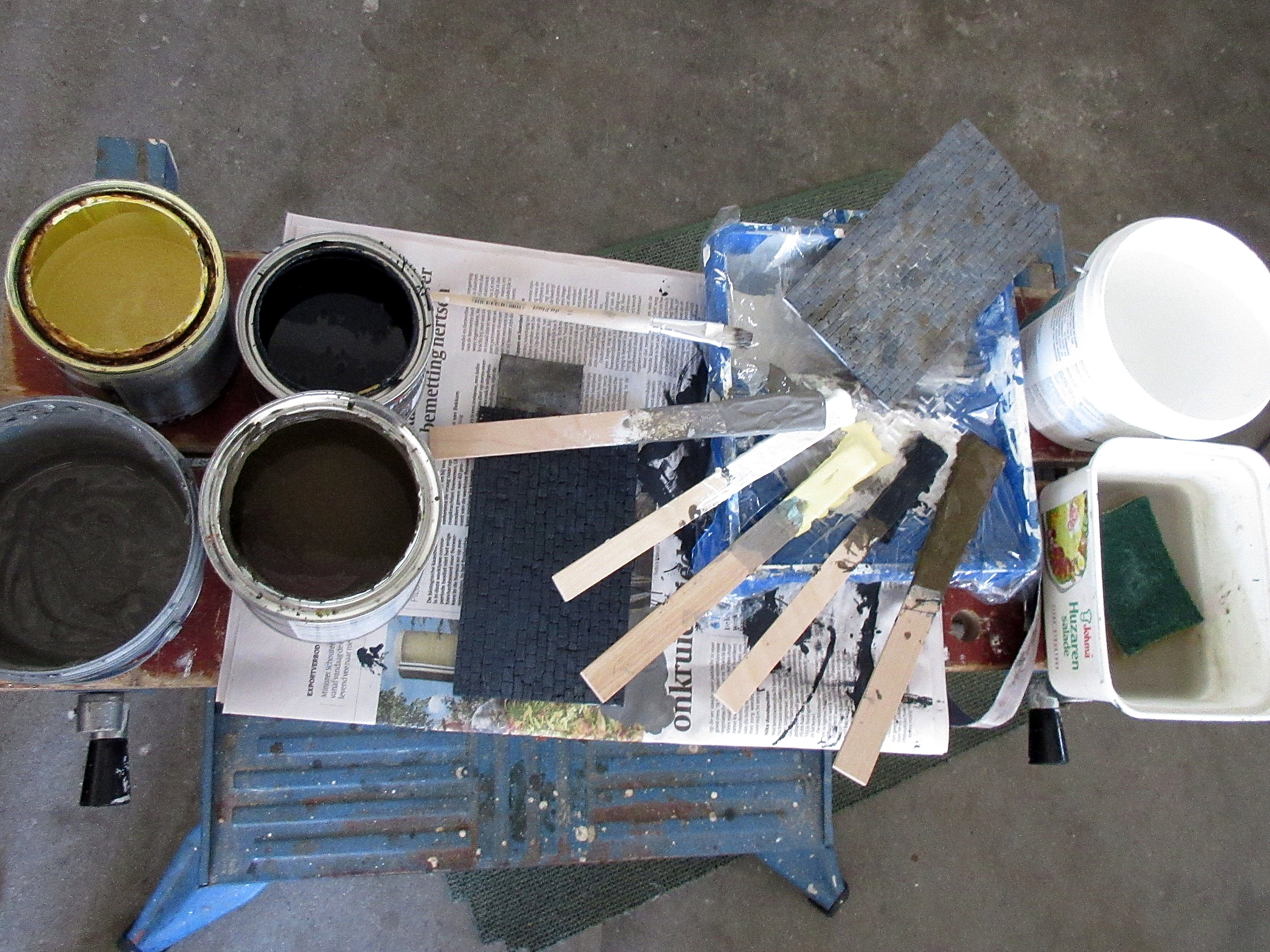 Thereafter a mixture of tile adhesive, sawdust and water followed.