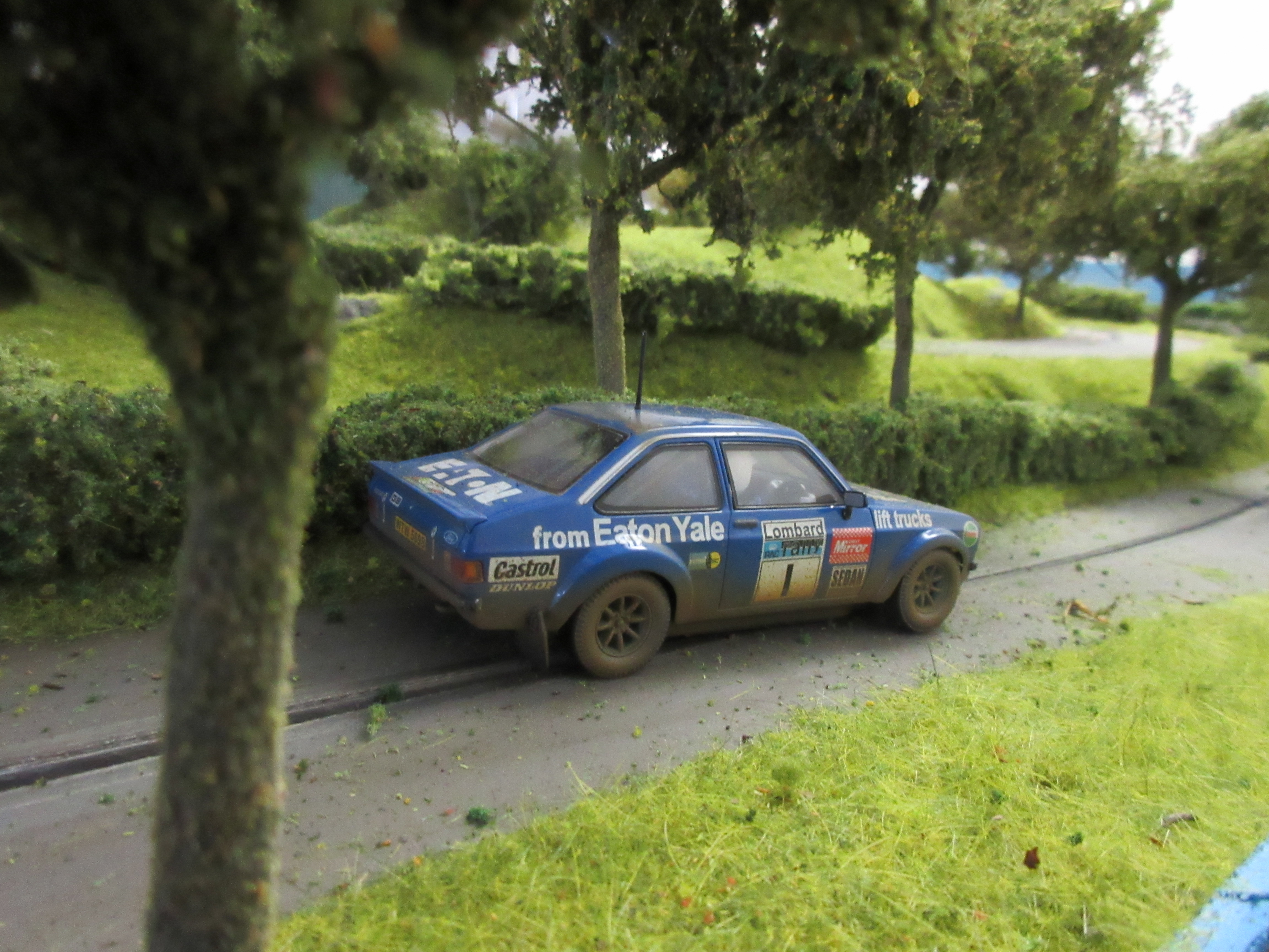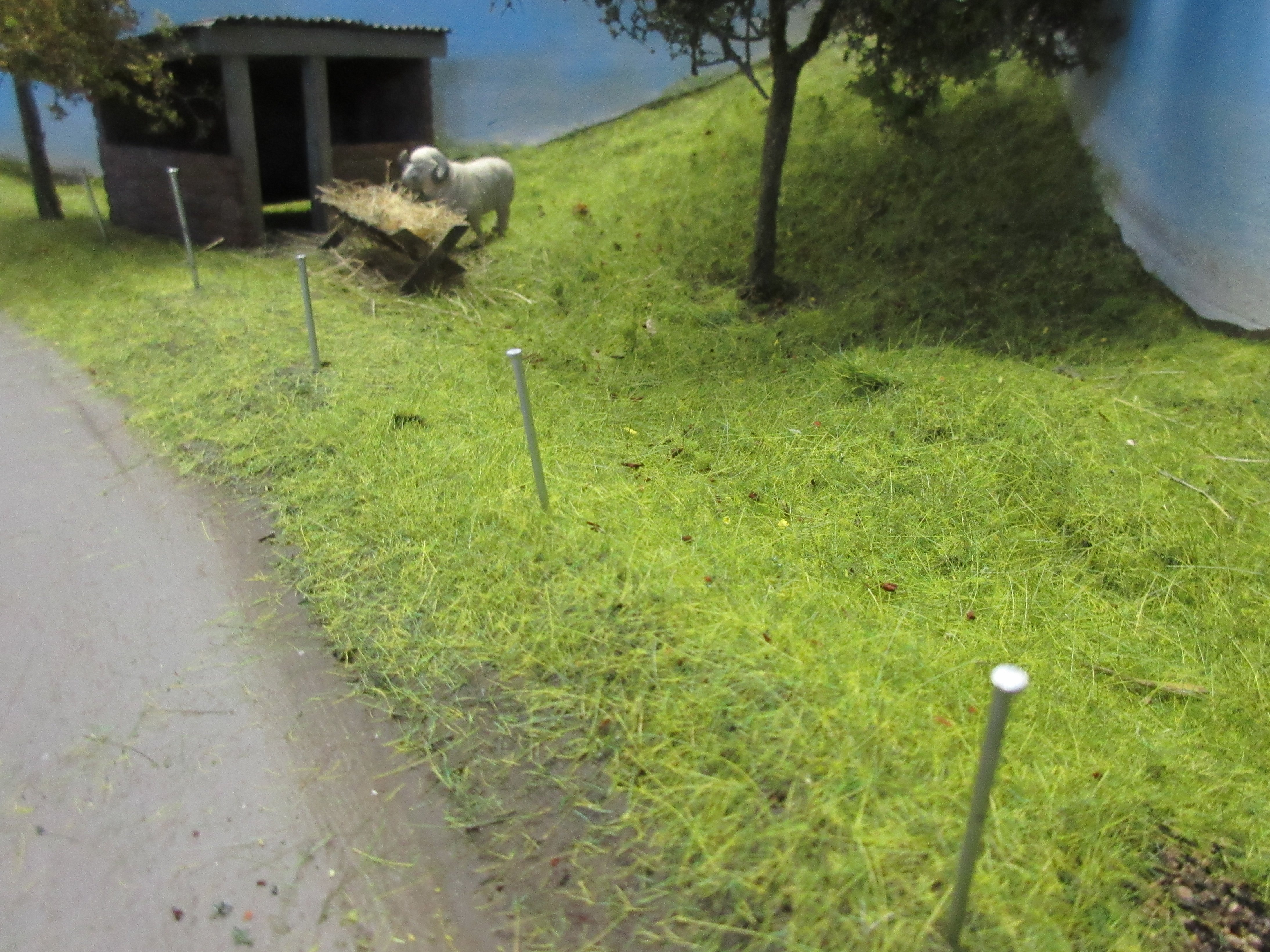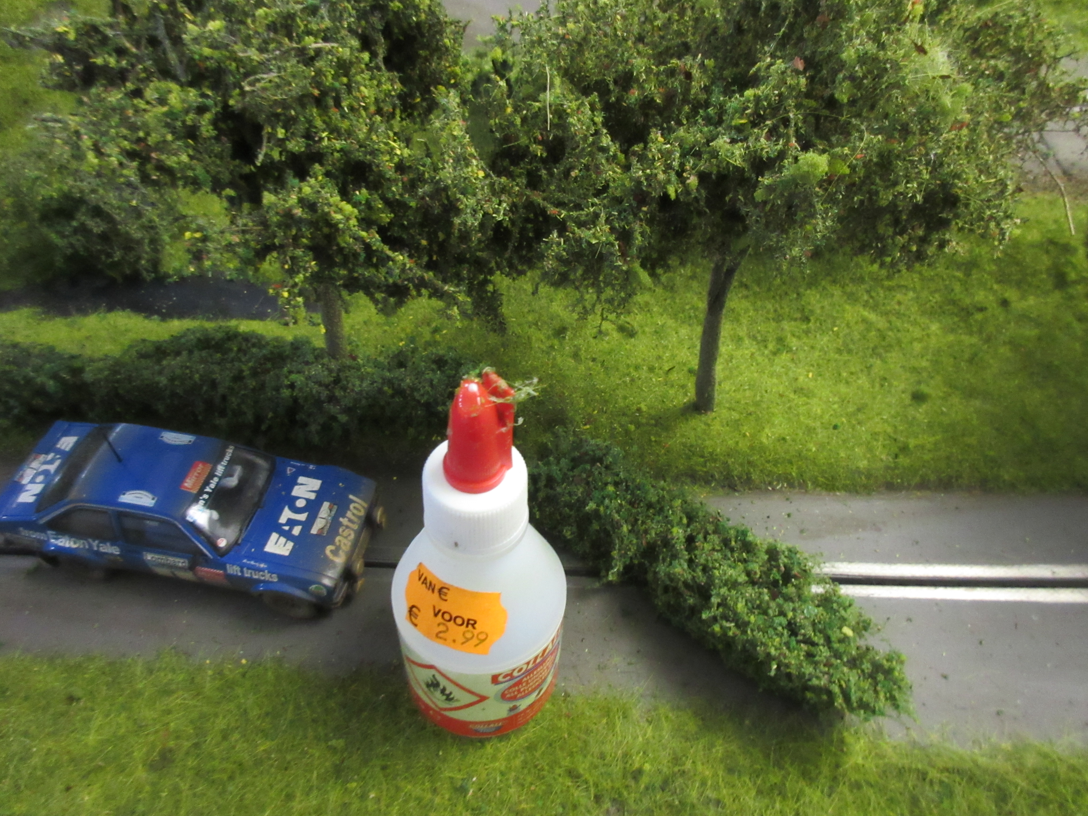 In the last two photos the hedge is only held in place by gluing it to the grass and tree trunks.
