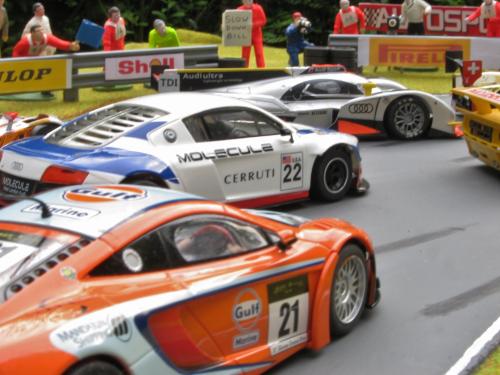 At one point David and Vic' were side by side at the corner after the drivers station when David's car went up on 2 wheels for a few inches before dropping back into the slot to carry on racing. Great fun but no photo.