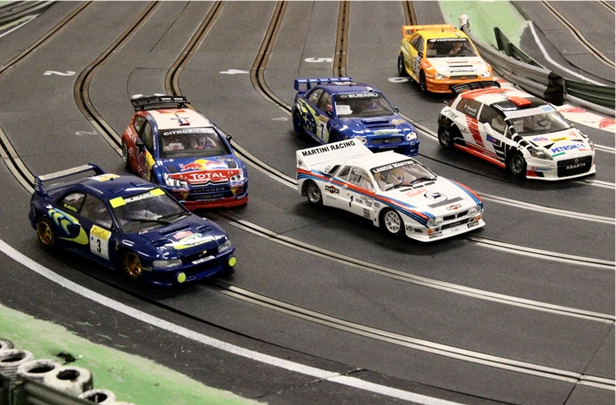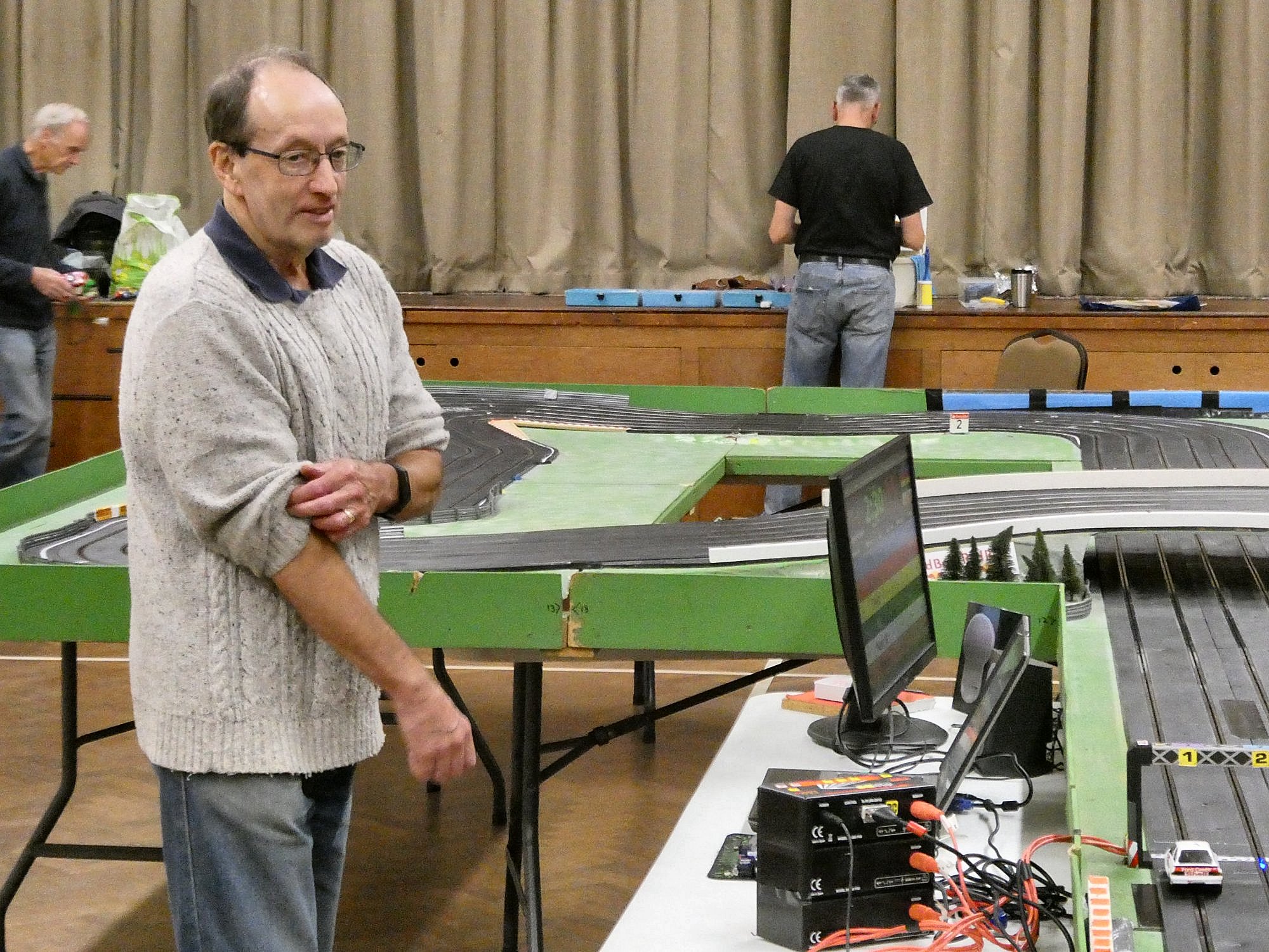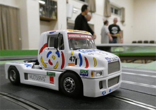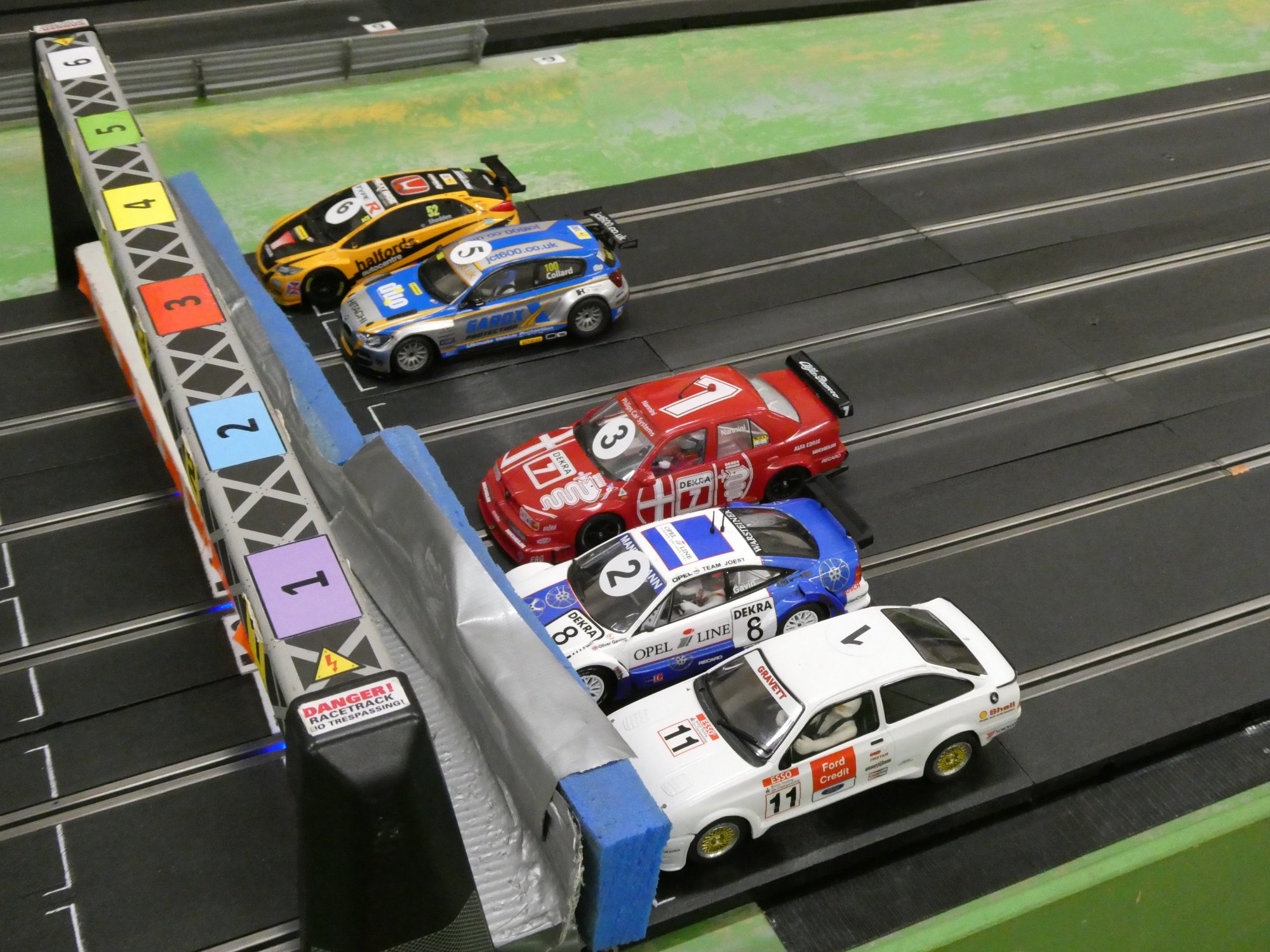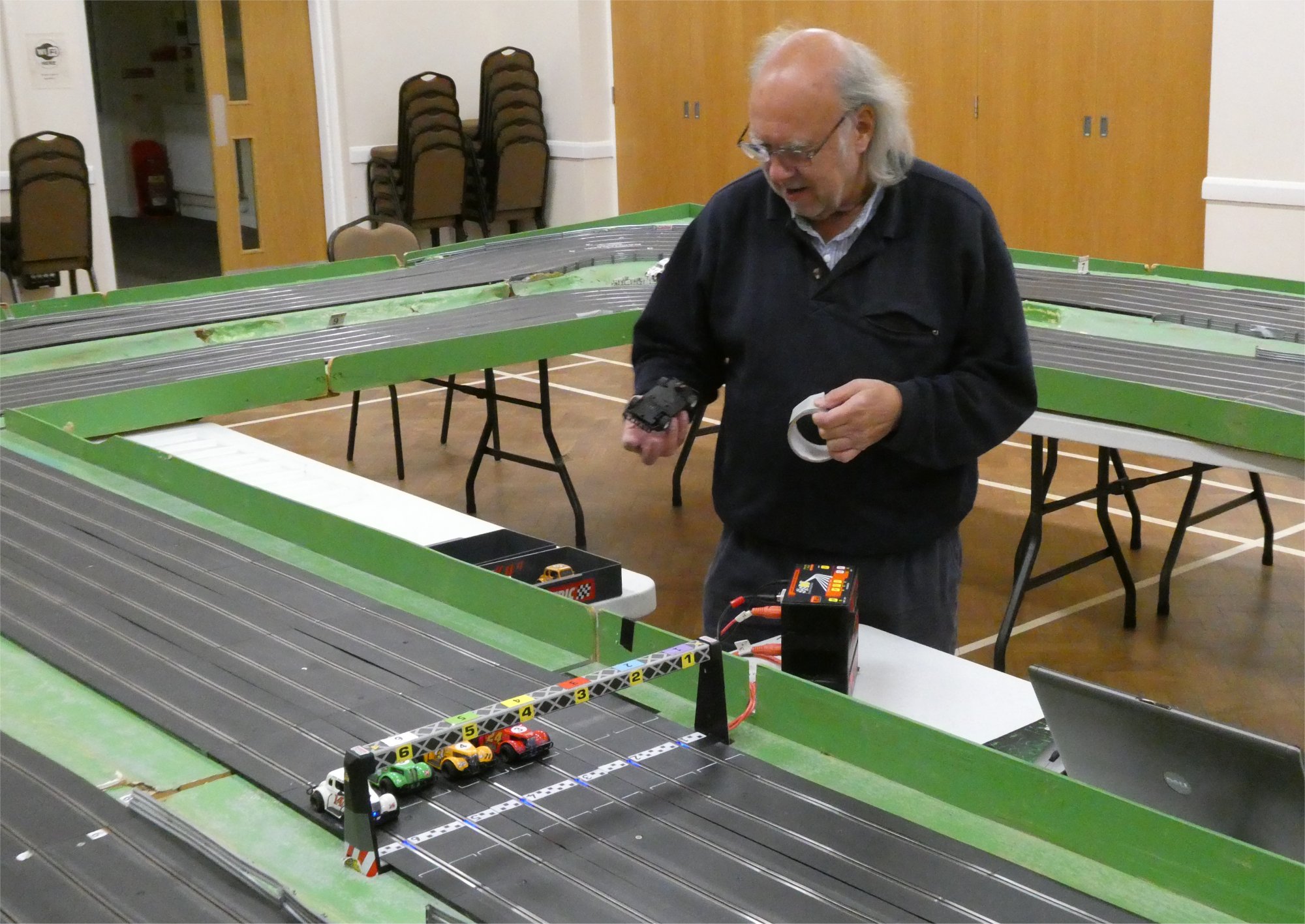 With equal cars it was down to the car set up and smooth driving from the eight drivers. Close racing ensued with many side by side battles, Vic eventually coming home in first place just seven feet ahead of Bill. The screen shot from the last heat shows how close the racing was, Alan taking the win by a fifth of a lap from Ben, with Mark J just over a half a second behind in third spot.