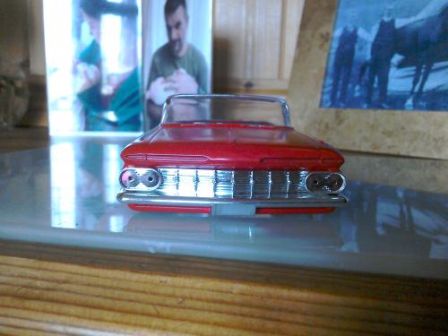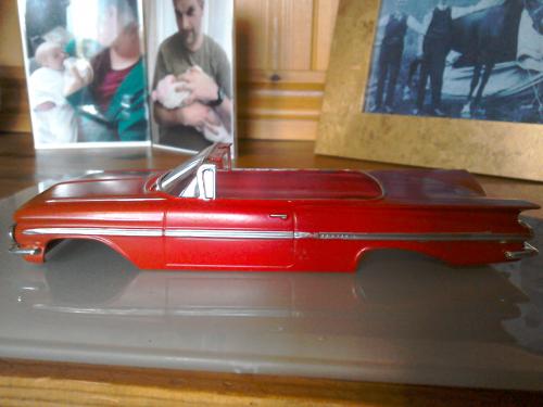 I did put together a Cadillac Eldorado 1959 in optional hardtop version, and like your Impala took up 2 lanes!! It was finally mentioned that it is not fair on the Cortinas and minis racing at the time. It is shod with "Slot-it HRS2 chassis kit".  I do use it as a pace car occasionally to tease the other drivers Bigsmile . It has been a pace car for Nascar racing!!