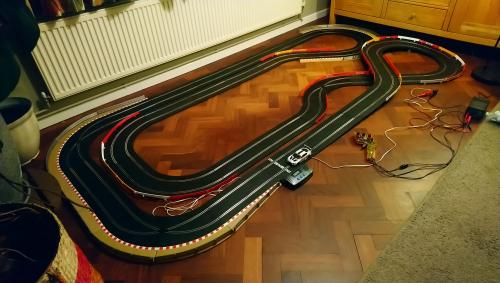 I am putting this on here on behalf of all the newbies. Its a second hand set I bought from a seller in the UK who sells these layouts as a starter set for us beginners for less than £100, which I think is good value for a Scalextric sport digital set (with lots of border that I am yet to fit) .
