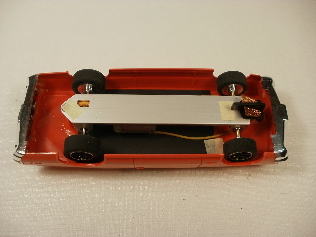Decals, driver, full roll cage, and fire extinguisher added. A small piece of brass was also added to bring the car to the minumum weight of just over 100-grams. The brass plate alone weighs 27-grams. The inserts had to be changed to something that was more period correct. I don't think Chip Foose was making mag wheels back then.