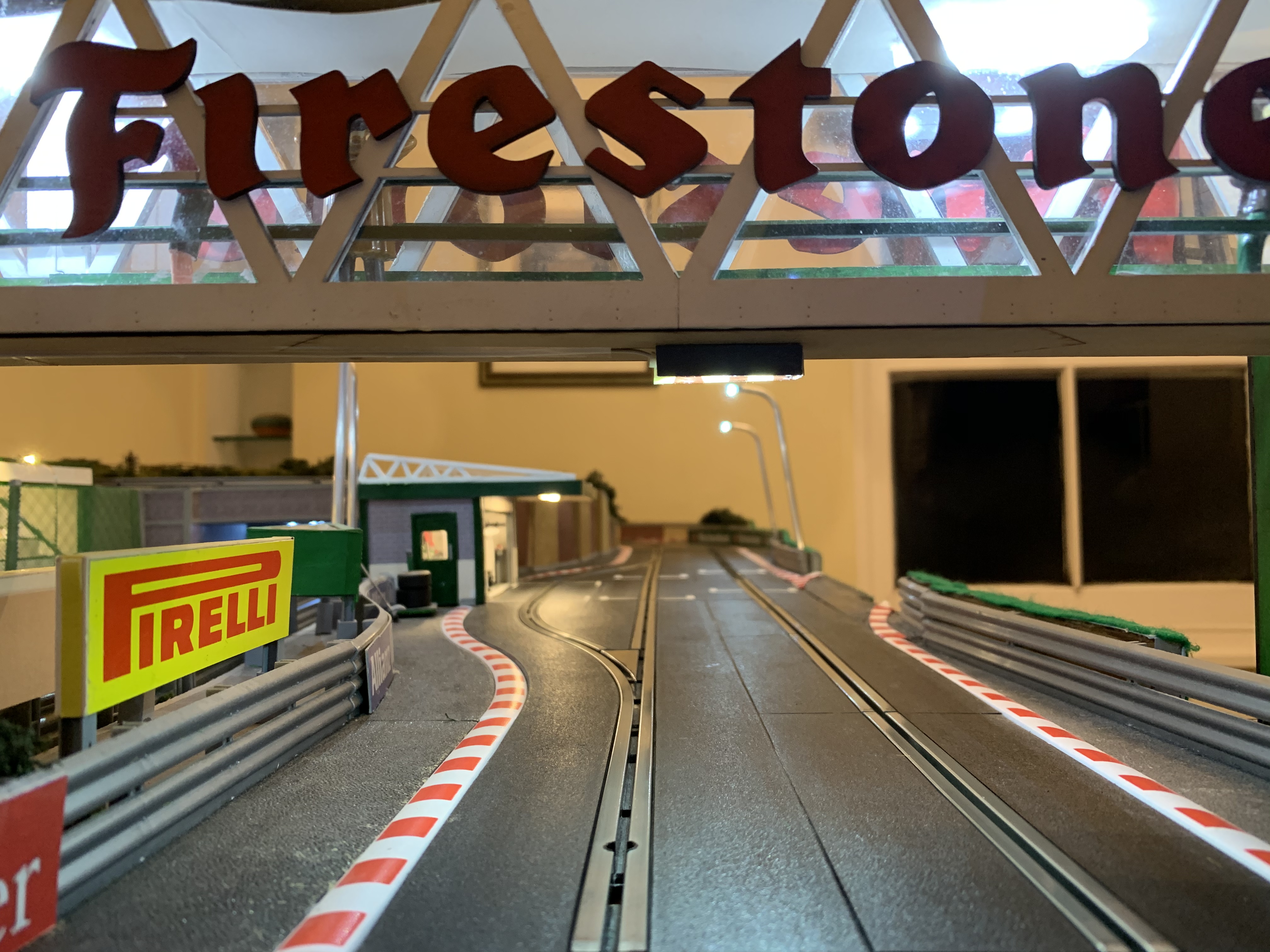 The whole premise behind the layout, obviously aside from racing, mostly with pace cars (so no curves less than second radius), was to apply a level of ‘model railway’ level of scenary. Of course, and particularly given the relatively large size of 1/32 scale, the very limited space available is going to lead to inevitable compromises in the overall levels of realism, but hopefully I have captured the ‘flavour’ of a real race track, and perhaps shows how something completely self contained can be built in a small space.