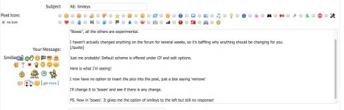 My smileys are also above the reply box rather than to the left, which is confusing.