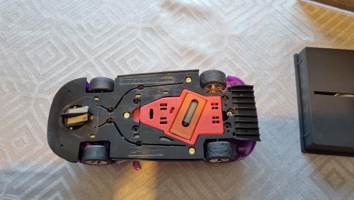 Rear tyres are stock glued and trued, rear body post has been trimmed to correct the massive arch gap at the rear, and the wing needs a support gluing back on but is complete (comes this way as supplied, just I obviously used the wrong glue !). There is no glue on the body as I just had it sitting in the slots with blu-tack.
