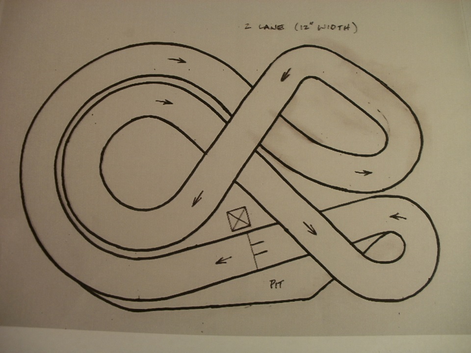 This is the basic layout. It's a custom "one of a kind" track well suited for my basement. Wish me luck.