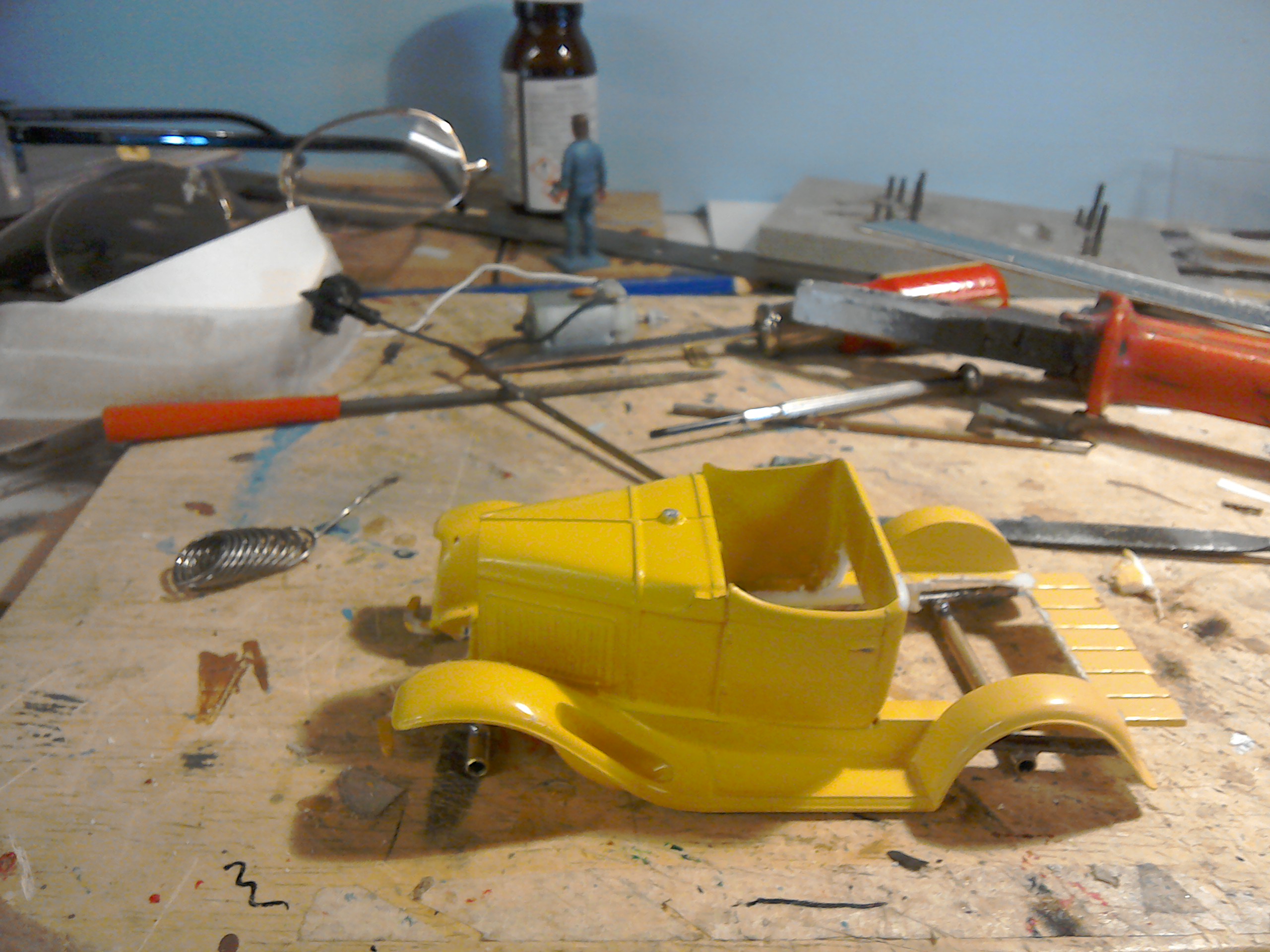 Shame, I really like my little Ford coupe. Came fourth in the racing against all the giant Yank tanks. For a change, I will try and keep this one complete. Usually all my chassis get reused and recycled into the next catogory at Bordo. I got another Pittman 196B that is even quicker than this one so it should survive. The Pittman will be perfect for an Indy car in 32nd scale.