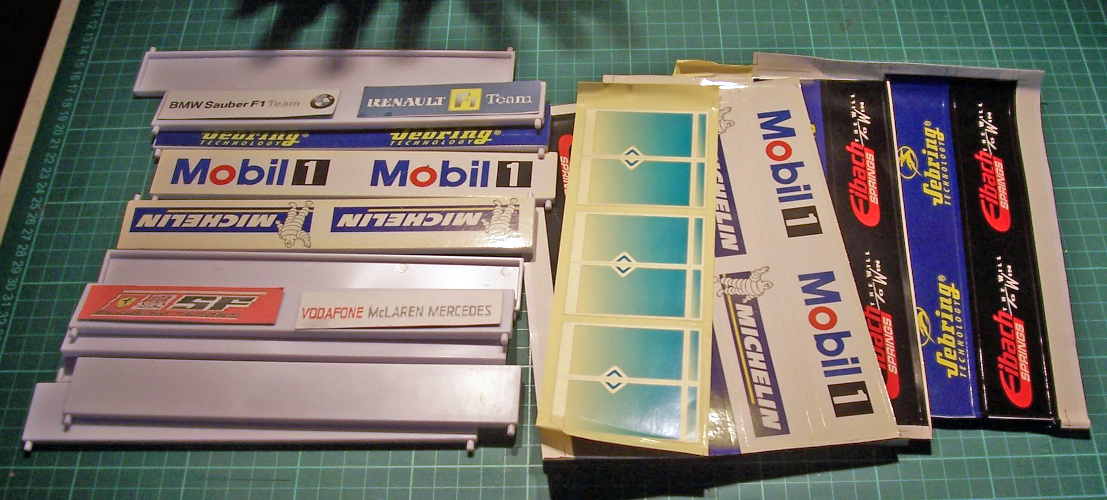 Assorted spare bits for Carrera pit garages. Bases, advert boards and stickers. Free to a good home, just pay the postage.