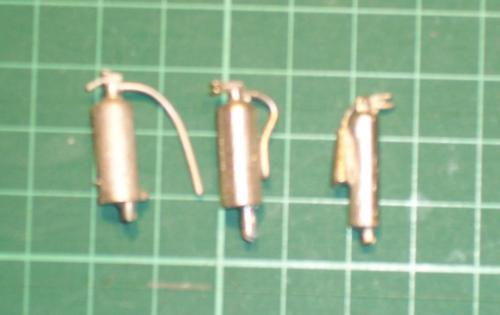 Tarn Model Foundry fire extinguishers, new, unpainted, set of 3 assorted types, 9 sets available - £1.50 per set plus postage at cost.